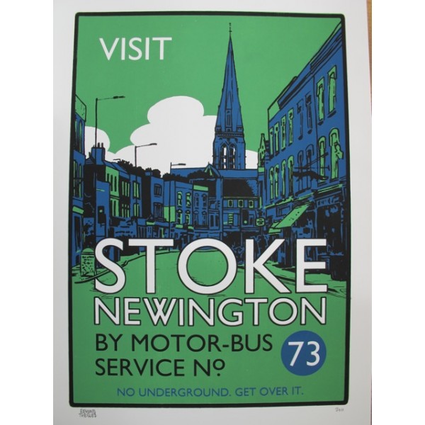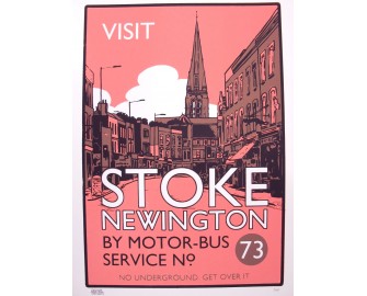Stoke Newington by Motor-Bus is the first to be released in a new series of Districts of London posters by old friend of Shelf, Beyond Thrilled.