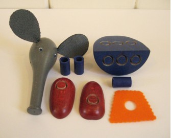 Georg Kellner, ingenious tinkerer, originally developed these charming characters for his own children. The models he built needed to be simple for their small hands, he faced the problem of joining wooden bodies, heads and limbs easily together, with joints that were stable and strong. He solved this by using pieces of coloured rubber tubing.